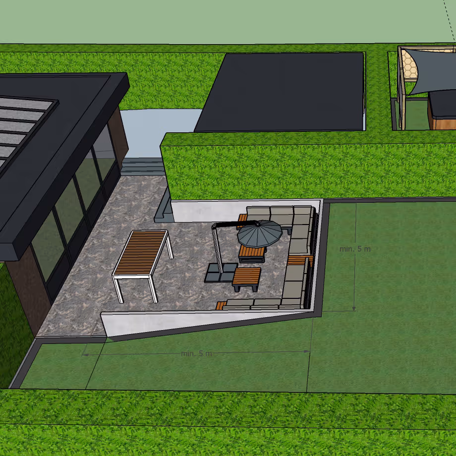 Met aandacht voor indeling, materialen, privacy, zonlicht, beplanting en functionaliteit. Tijdens het traject krijgt u steeds duidelijke plannen, visualisaties en een overzichtelijke offerte. Zo weet u precies waar u aan toe bent, nog voor de aanleg begint.